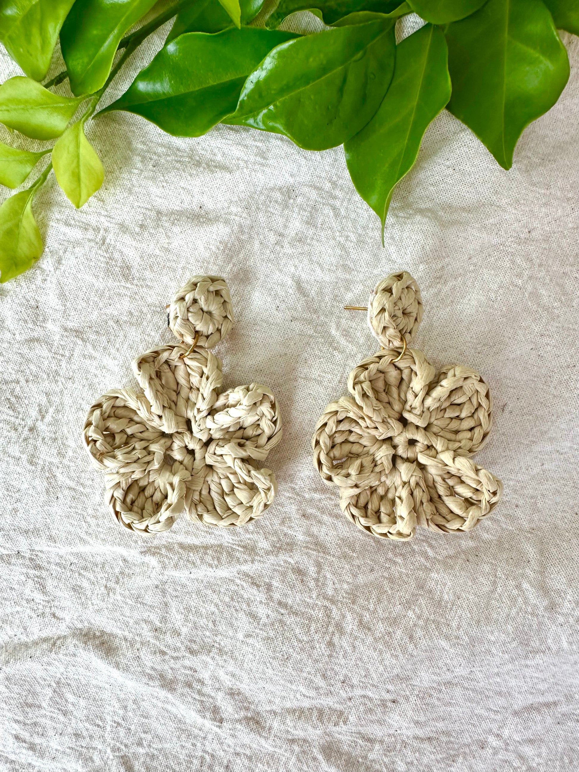 Inspired by the beauty of desert blooms, the Desert Rose Crochet Earrings are a delicate yet bold statement piece. Handcrafted in crochet these floral-shaped earrings are made from raffia, offering a lightweight and airy feel. Their unique texture and organic charm make them a perfect accessory for any occasion, from casual days to elegant nights.