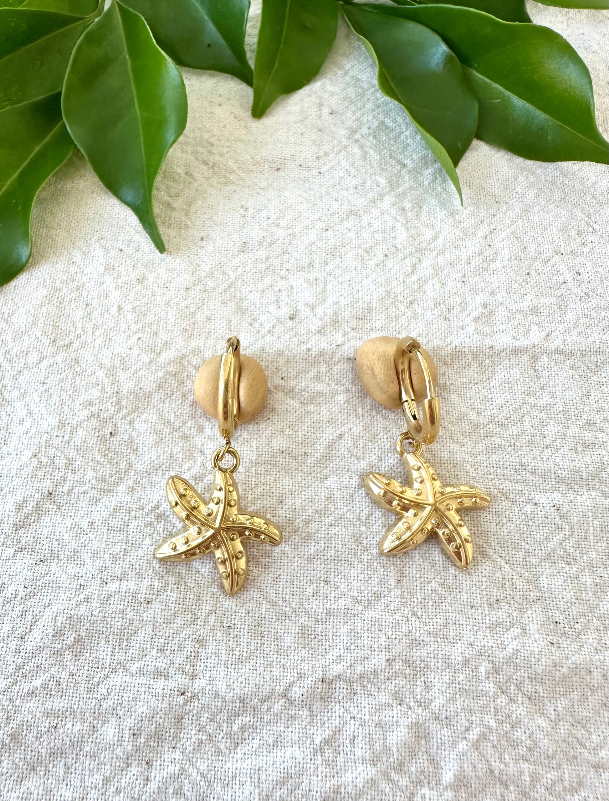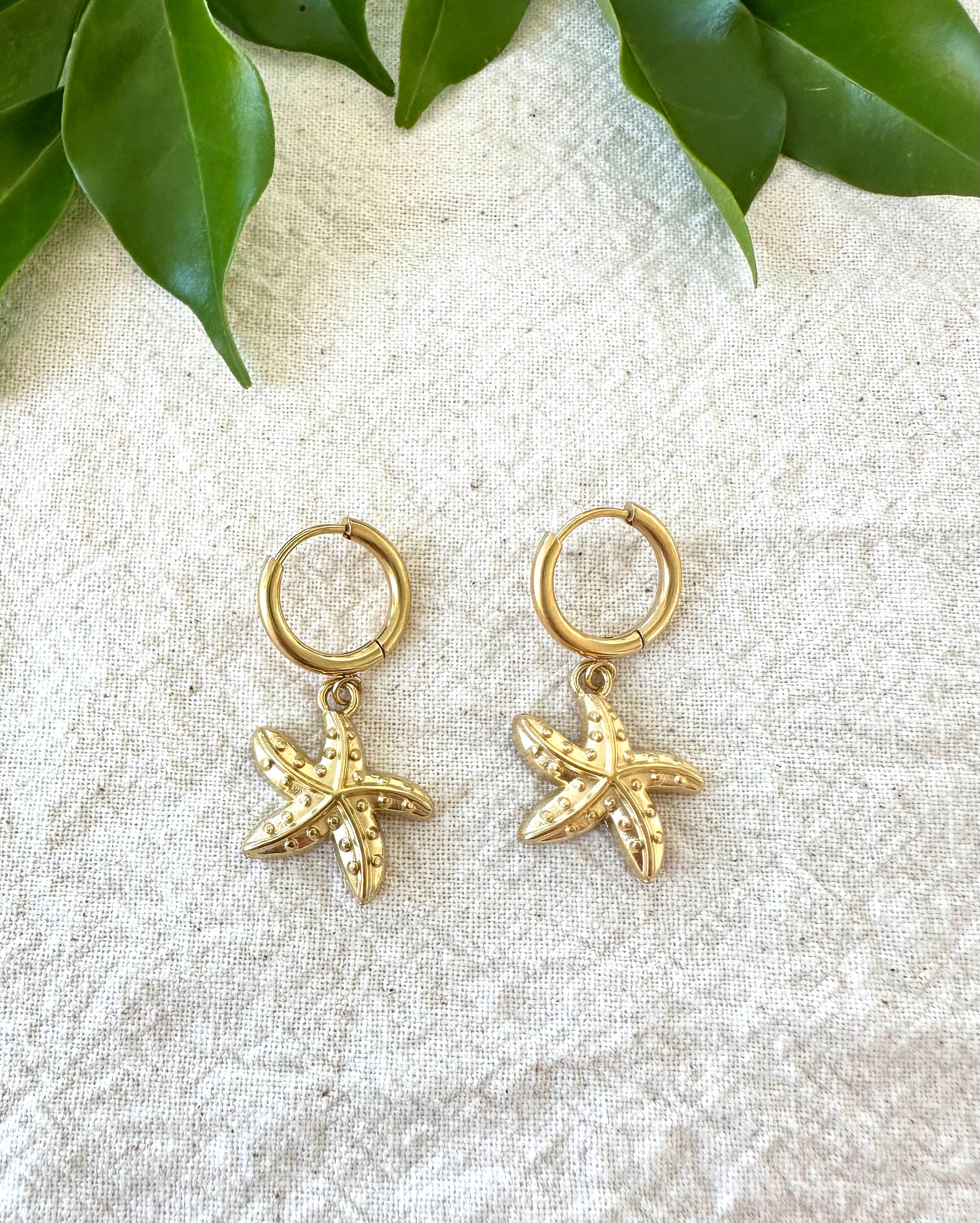 These beautiful earrings feature a chic starfish design, perfect for adding a touch of coastal charm to any outfit. Made from high-quality materials, they are both stylish and durable, ensuring you can wear them from beach days to summer nights without worry.